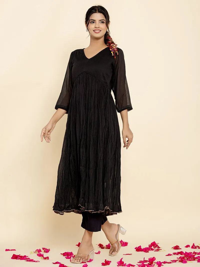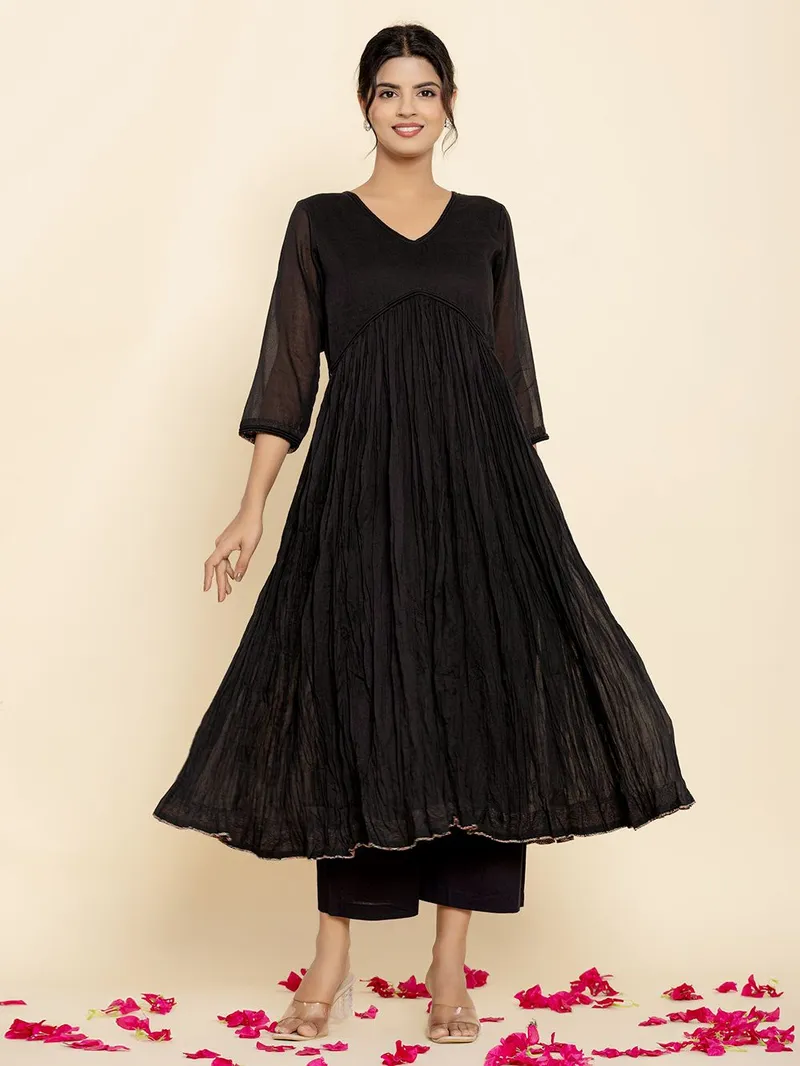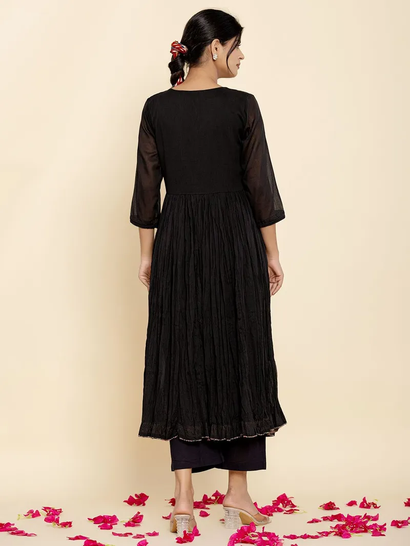 Black Cotton Mulmul Kurta with Pants – Set