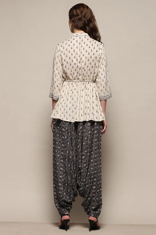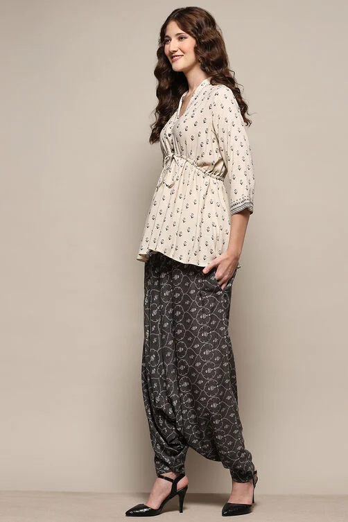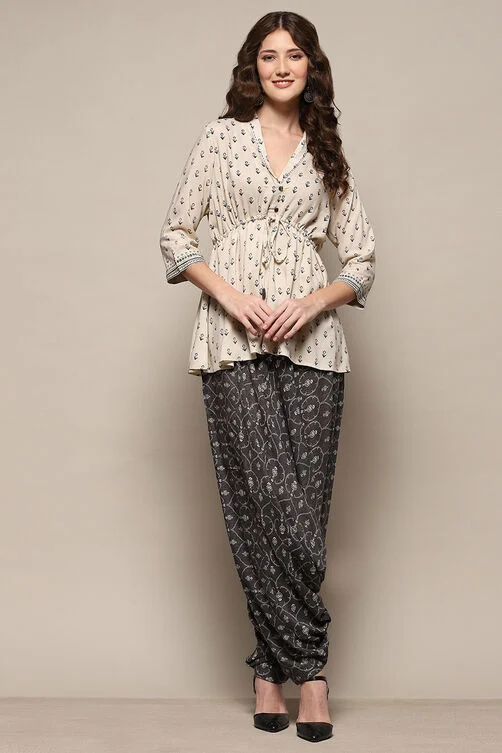Women Charcoal Rayon Asymmetric Printed Kurta Set