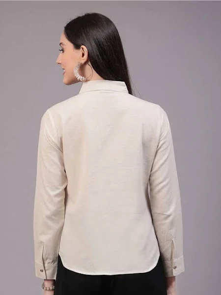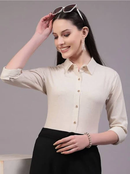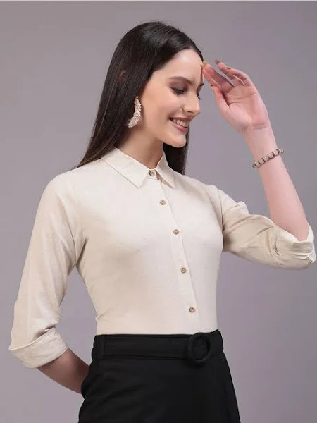 Effortlessly Elegant: The solid beige color and clean lines make this shirt both simple and stylish, perfect for women who appreciate classic elegance.